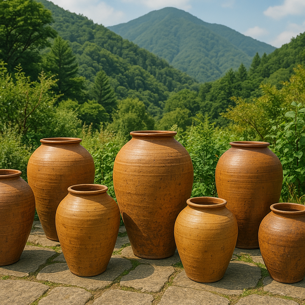 - 주변 산에서 가져온 듯한 황토 화분과 항아리