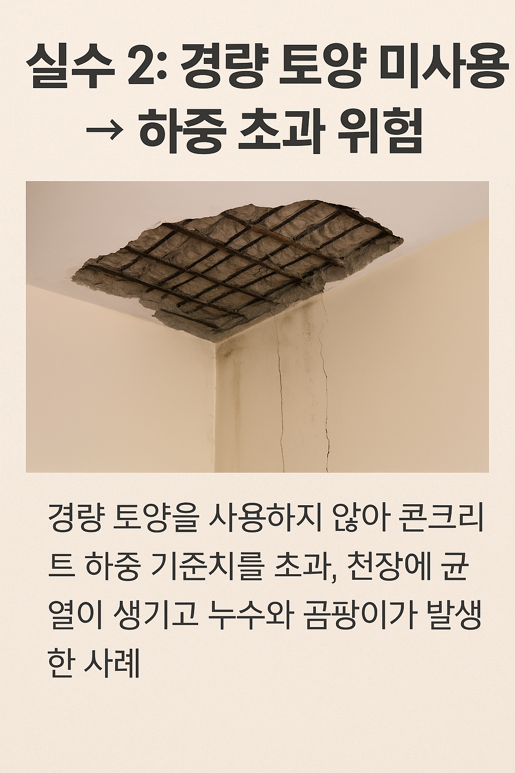 ❌ 실수 2: 경량 토양 사용 미흡 → 하중 초과 위험