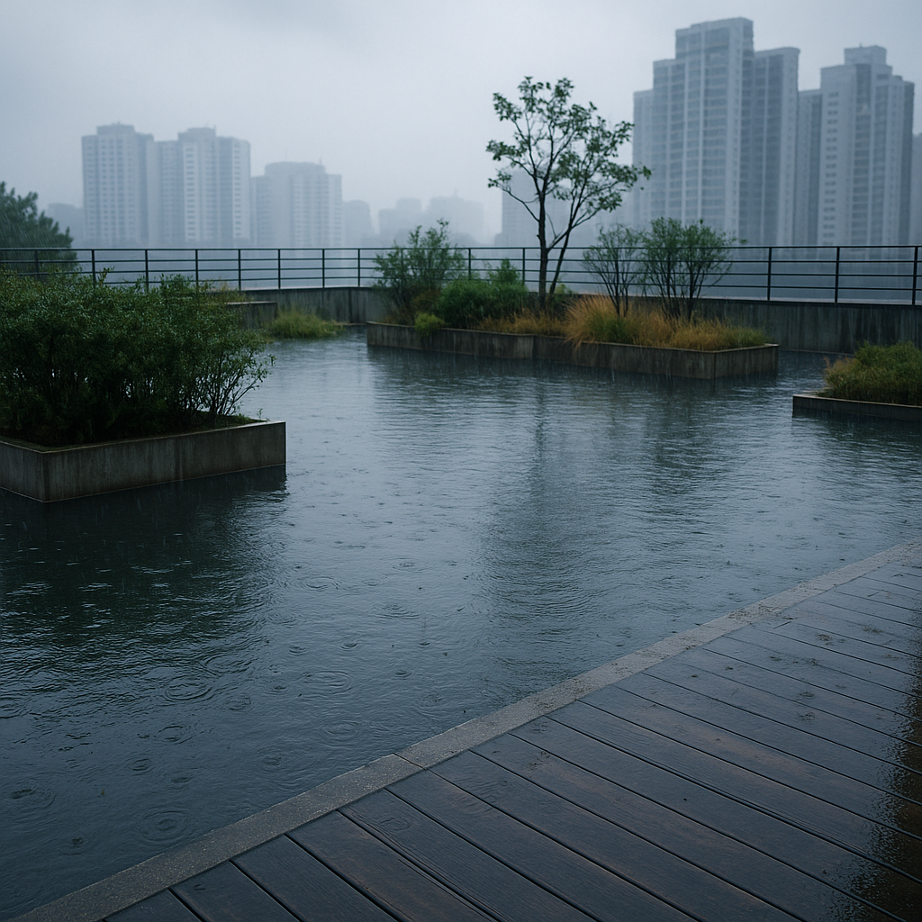 ❌ 장마철 옥상조경 실수 사례 1. 옥상 배수 실패 – 침수와 누수의 시작