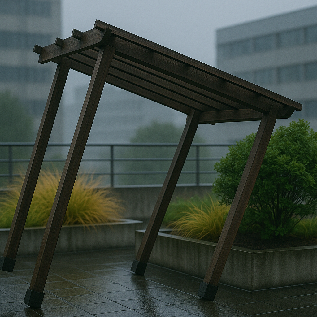 ❌장마철 옥상조경 실수 사례 3. 옥상조경 구조물 붕괴 – 인명사고 위험