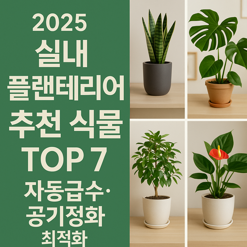 🌿 2025 실내 조경 플랜테리어 추천 식물 TOP 7: 공기정화 + 자동급수 최적화