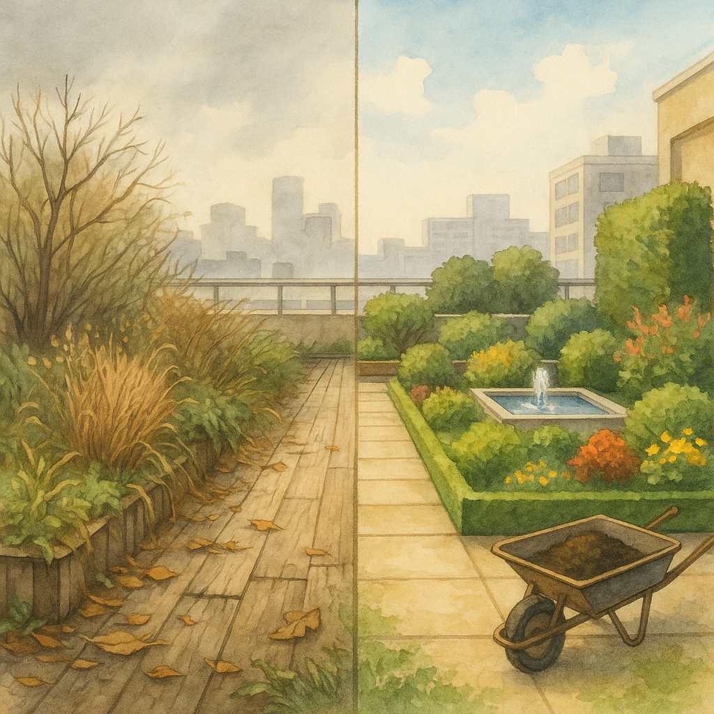 옥상조경 시공 후, 의외로 많은 분들이 **“생각보다 유지비가 너무 많이 든다”**며 고민합니다.