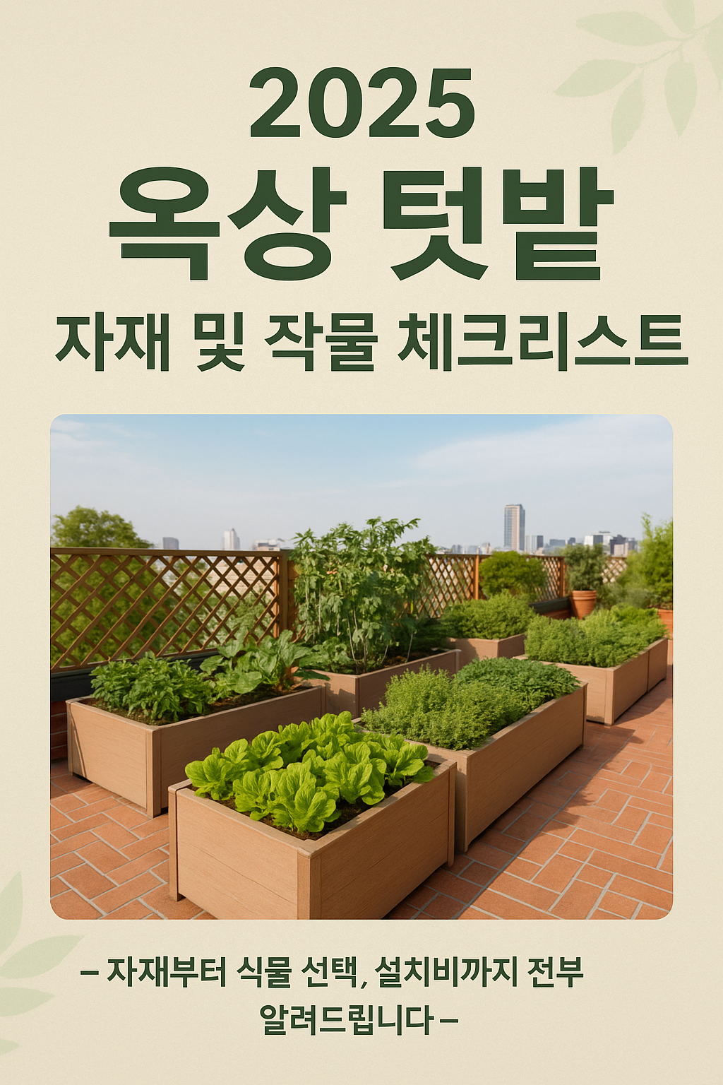 2025년 옥상 텃밭 만들기 A to Z! 텃밭 자재, 추천 작물, 시공비, 자동관수까지 실전 사례 기반으로 정리했습니다. 체크리스트 PDF 파일도 무료로 다운로드하세요.