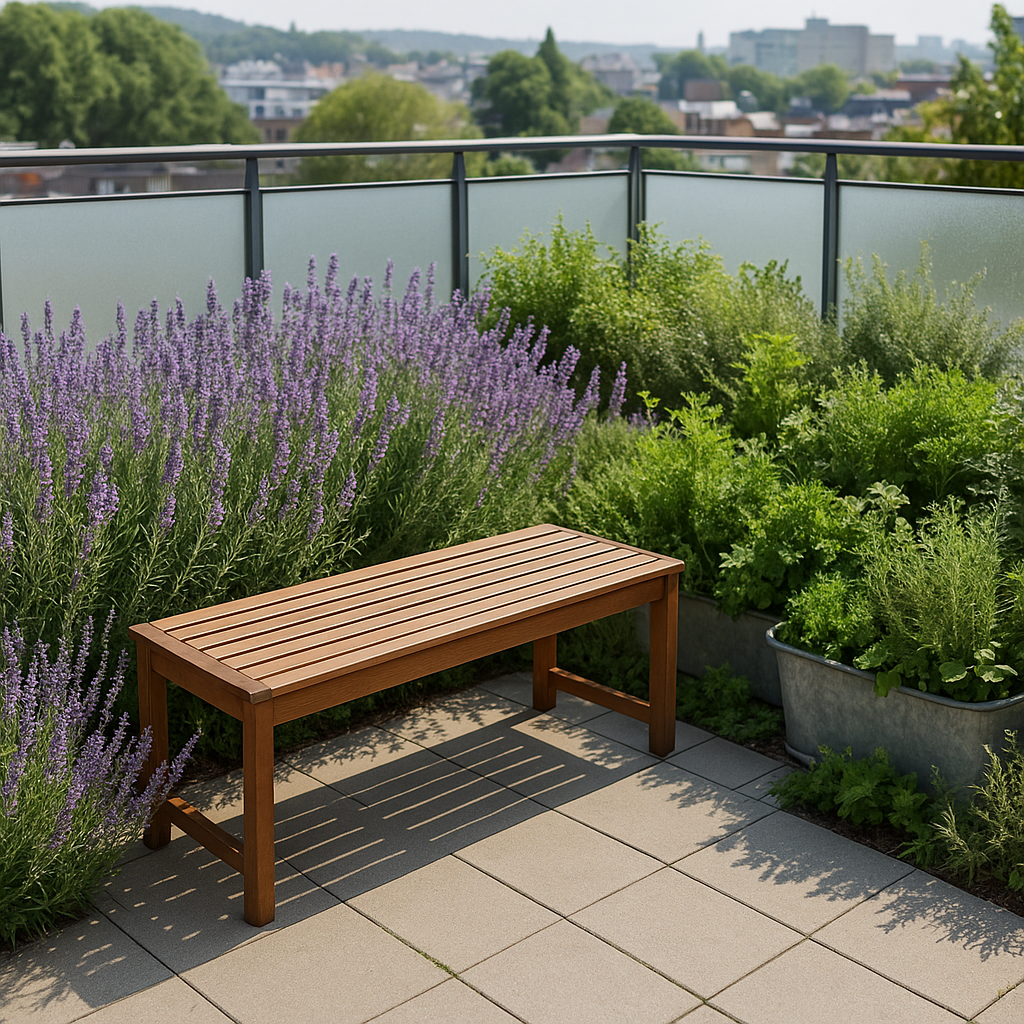 허브 식물과 벤치가 함께 조성된 아로마 힐링형 옥상 플랜테리어