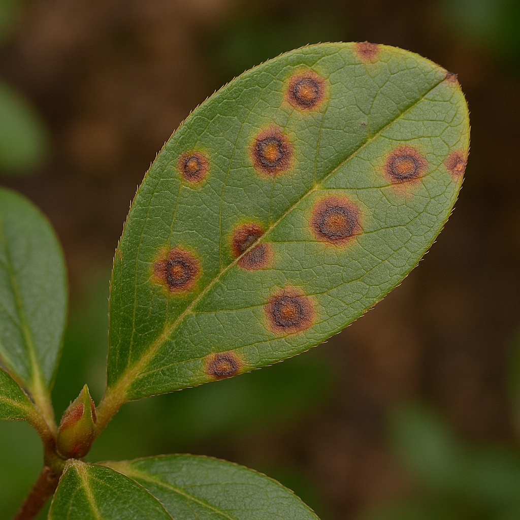 - 증상: 잎 표면에 둥근 반점, 점차 확대되며 조직 괴사 유발
