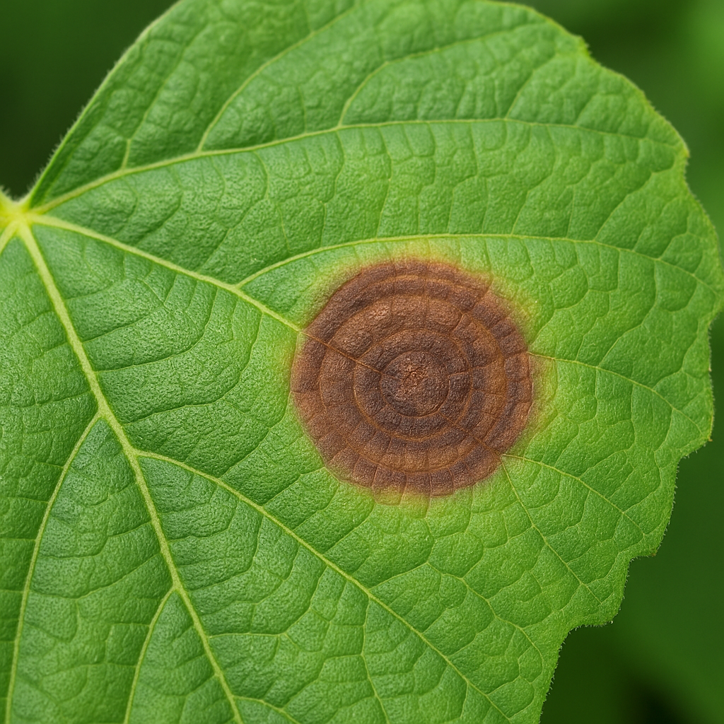 🩸 참깨병해 사례 1 – 잎에 동심원형 병반 발생